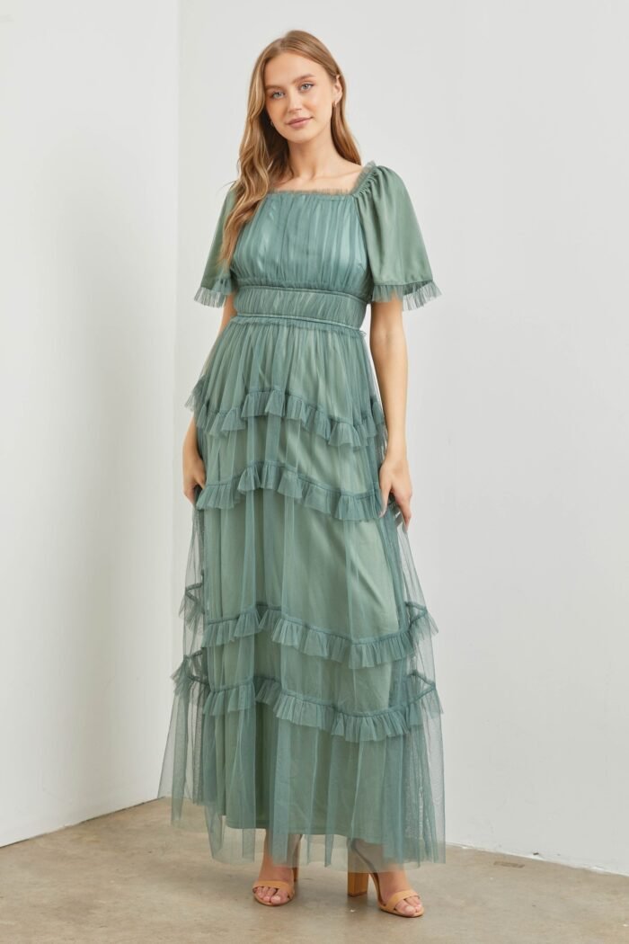Home Dresses Polgram Tulle Maxi Dress in Dusty Teal